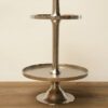 Perfetta per occasioni speciali, buffet o per l’uso quotidiano, l’alzata due piani in alluminio è progettata per offrire praticità senza rinunciare all’estetica. La struttura stabile e la finitura argento conferiscono un aspetto elegante, adatto a qualsiasi arredamento da cucina o sala da pranzo.