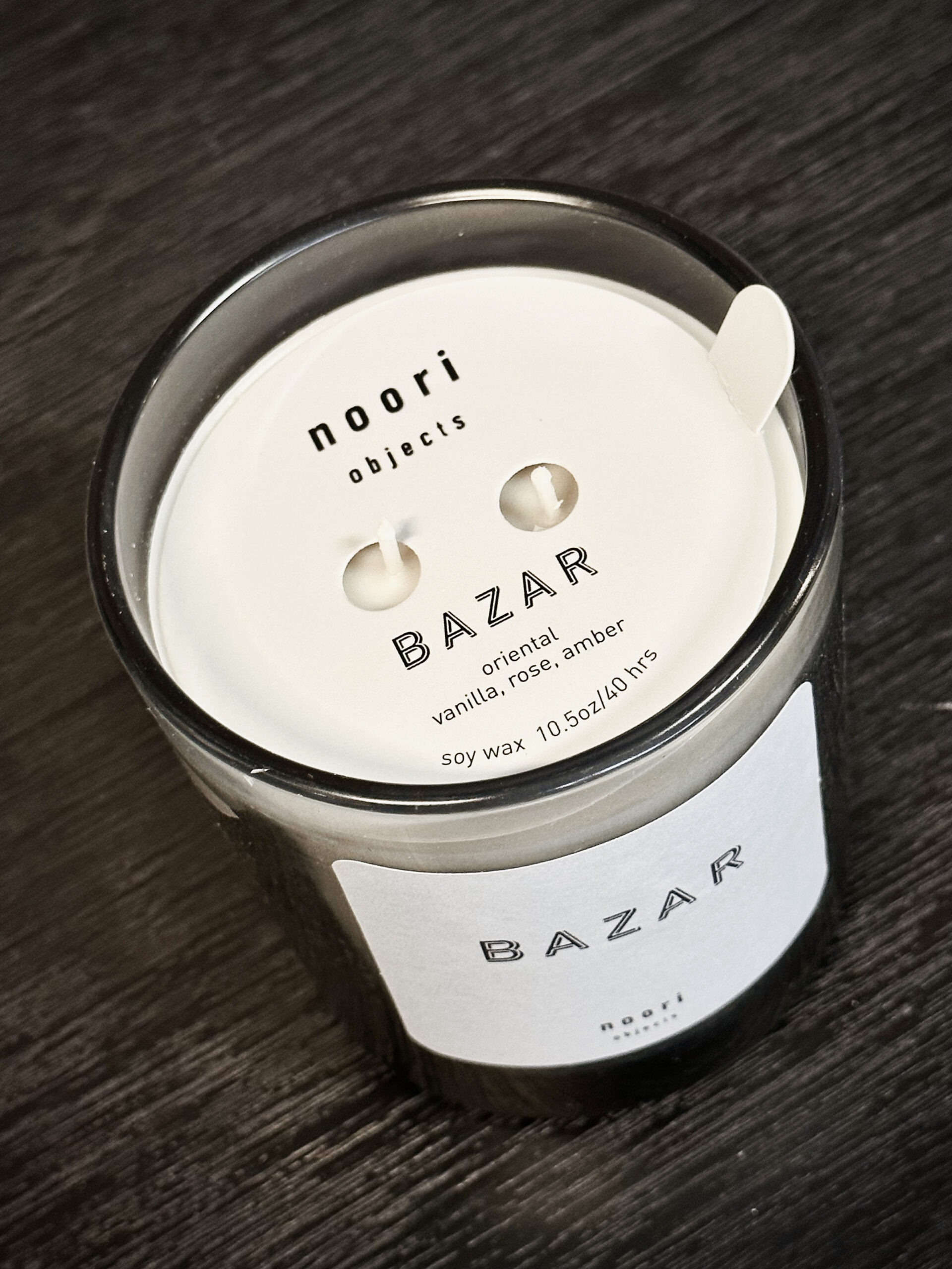 BAZAR è più di una candela: è un oggetto d’arredo sensoriale, capace di dare carattere e profondità agli ambienti. Perfetta per il living, la zona notte o spazi dedicati al relax, si adatta con naturalezza sia a contesti contemporanei che a interni dallo stile boho o industrial-chic. La sua estetica minimalista, arricchita da una texture visiva calda e da una fragranza dal forte potere evocativo, la rende un complemento ideale per creare scenografie olfattive di grande impatto.
