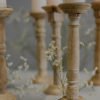 Candeliere in legno naturale dall’aspetto vintage. Ideale per allestimenti dall’aspetto rustico e naturale.