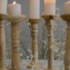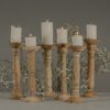 Realizzato in legno massiccio e naturale, lavorato a mano, ogni candeliere ha una tornitura leggermente diversa dall’altro.