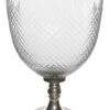 Coppa in vetro finemente cesellato con base argentata, utilizzabile come centrotavola e decorazione per matrimoni ed eventi in generale.