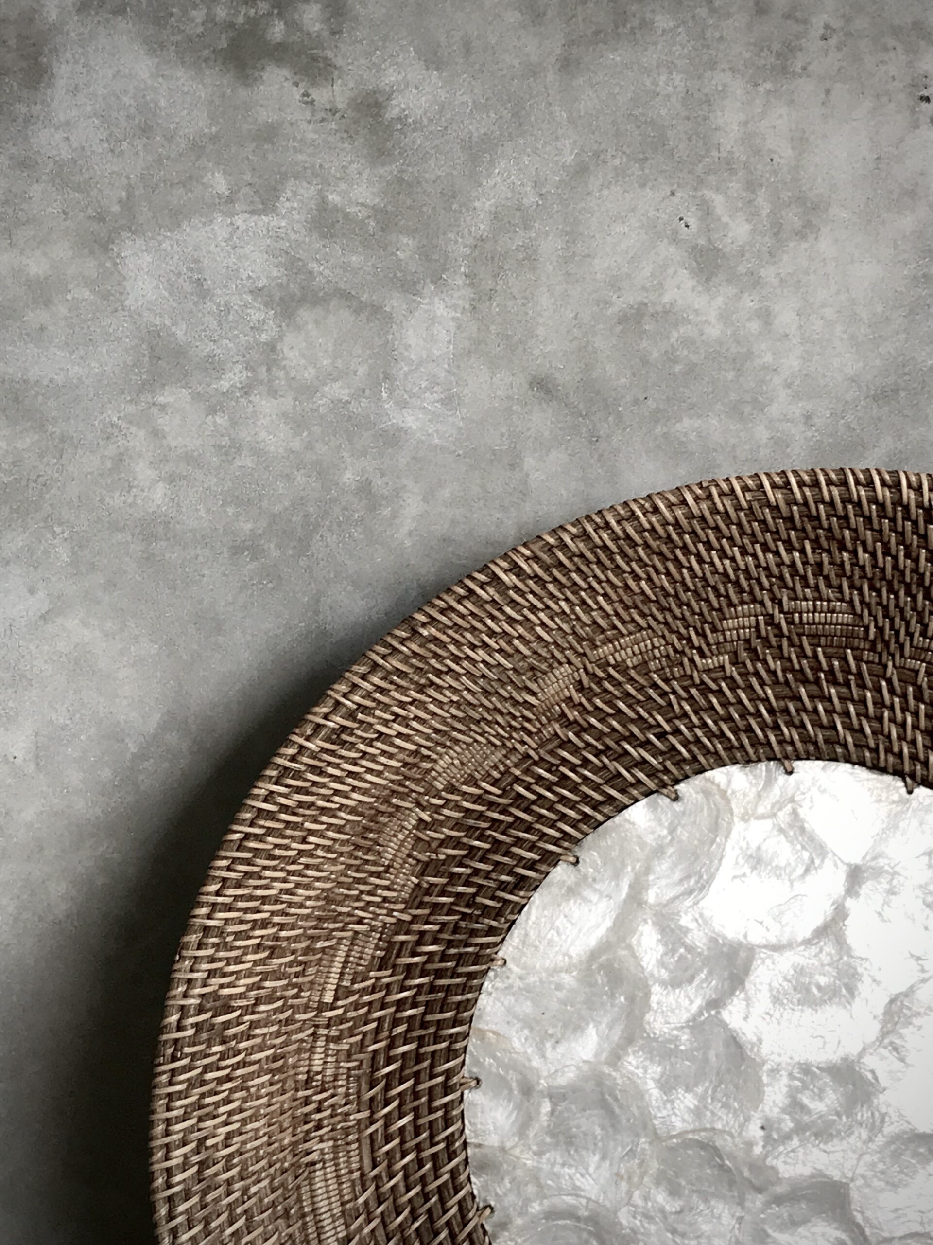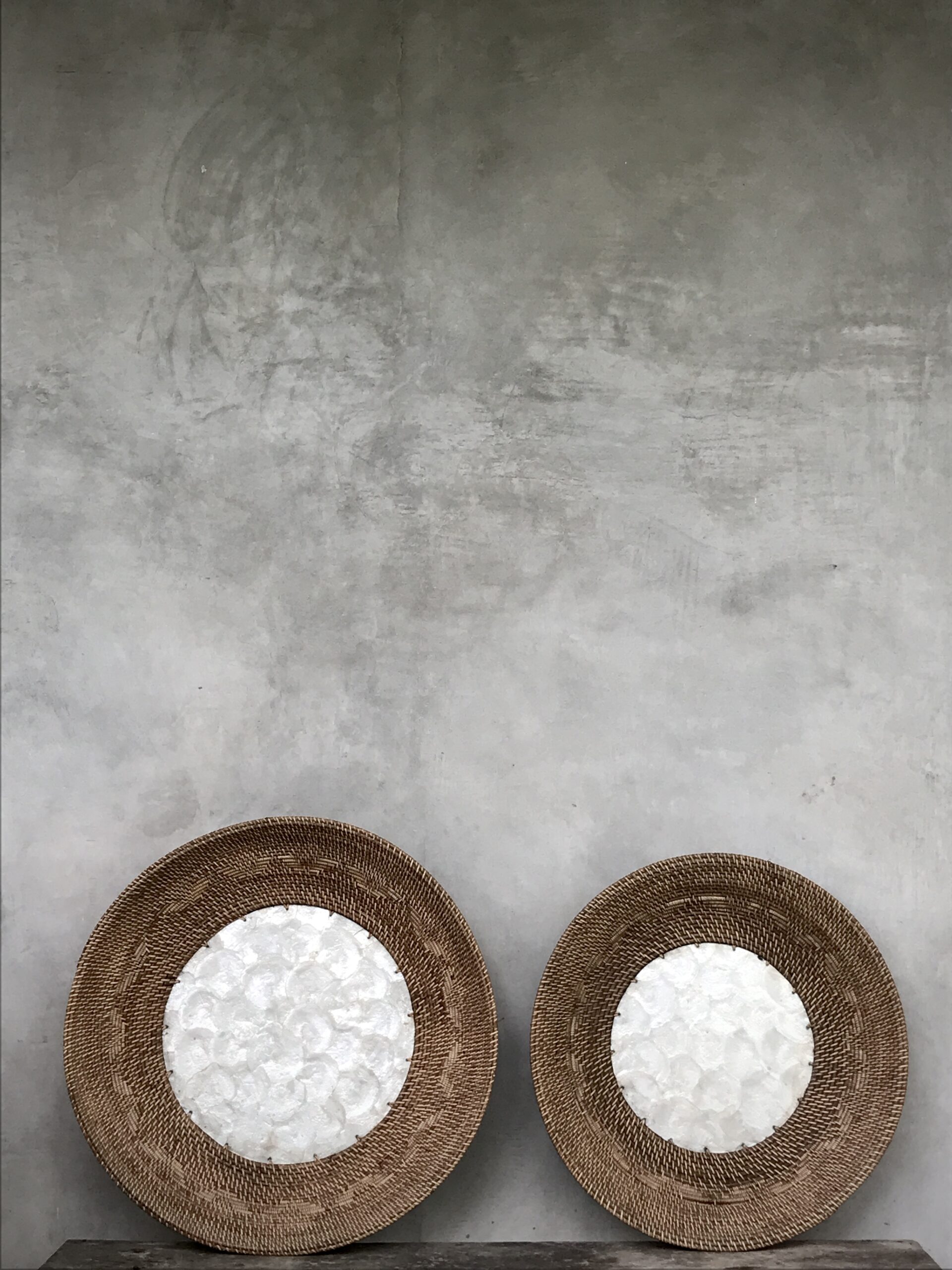 Il set DAWA è composto da due vassoi rotondi in rattan intrecciato a mano, impreziositi da un inserto centrale in conchiglia naturale. La combinazione dei materiali crea un raffinato equilibrio tra la matericità calda e porosa del rattan e la lucentezza irregolare delle superfici marine, dando vita a un oggetto decorativo dall’eleganza discreta e senza tempo. Ogni vassoio è unico, con piccole variazioni che raccontano la lavorazione artigianale e la bellezza autentica dei materiali naturali.