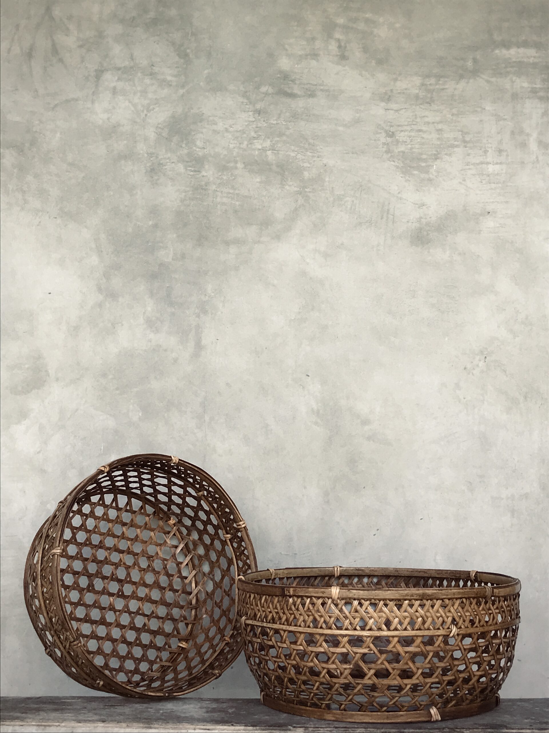 Questi cesti uniscono estetica e funzionalità, esaltando la bellezza artigianale del materiale.