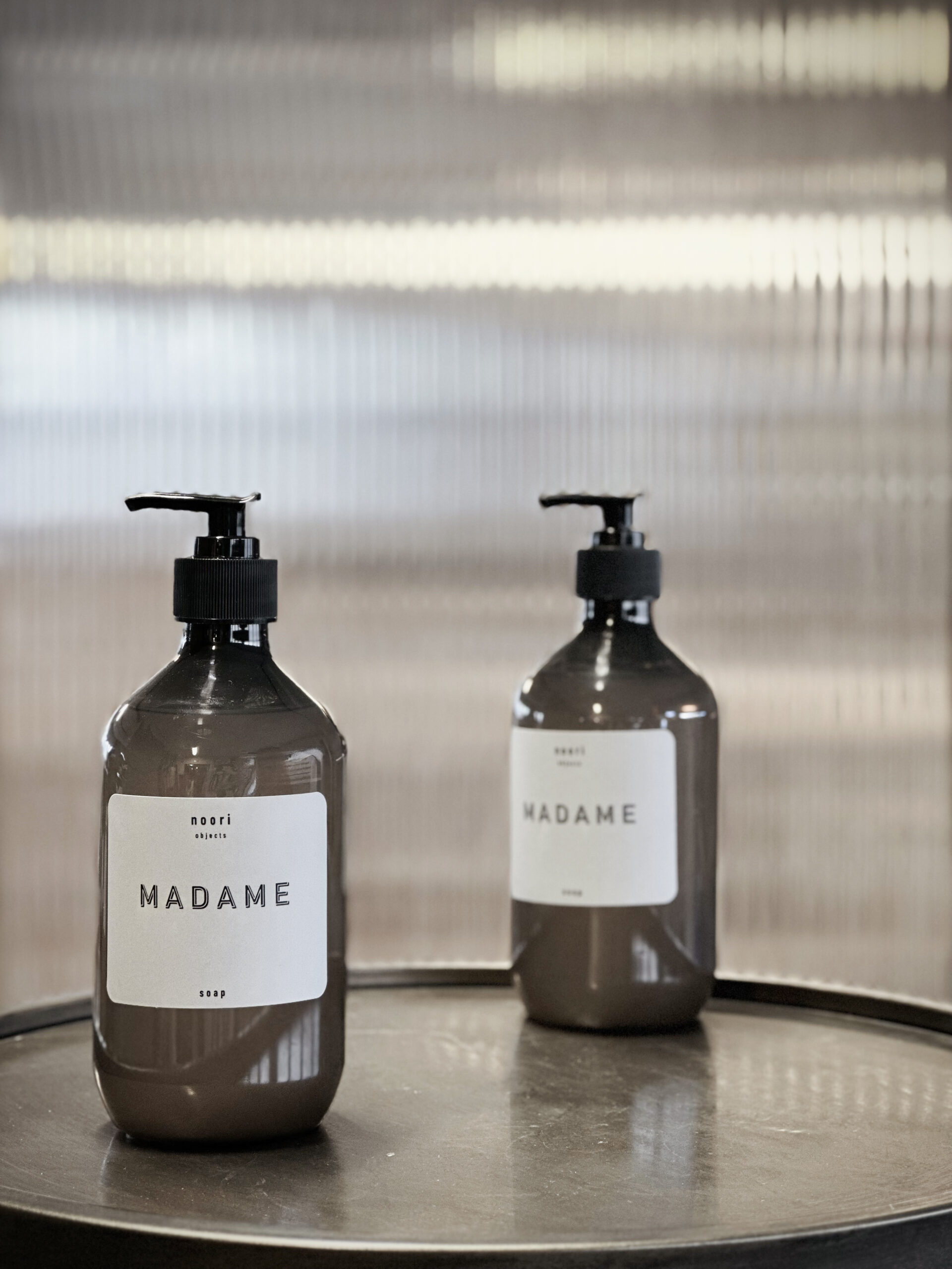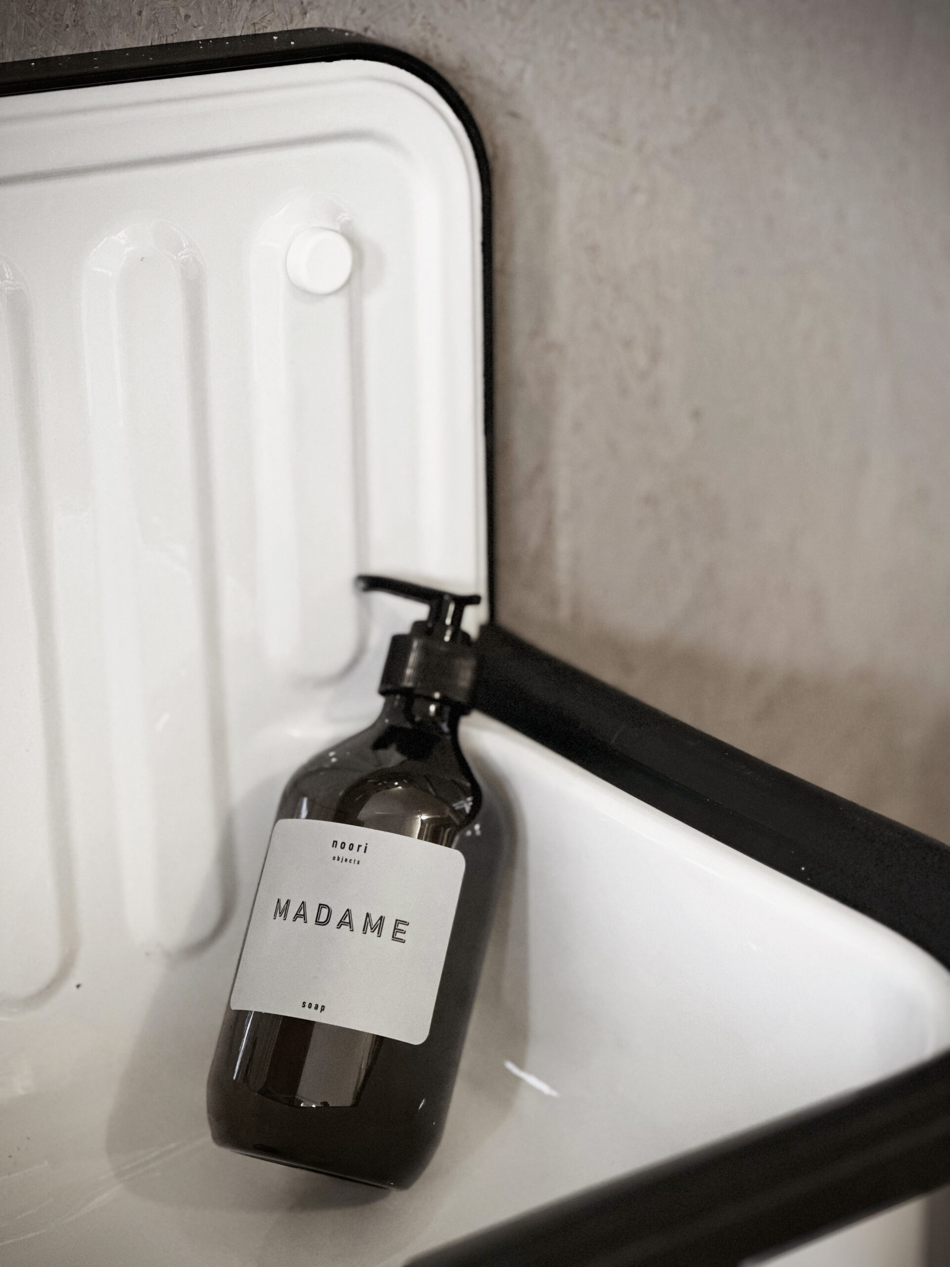 Il sapone liquido MADAME è un vero e proprio rituale di bellezza quotidiana. Formulato con una fragranza elegante e femminile, unisce note delicate e sofisticate che avvolgono mani e corpo in un bouquet raffinato e rilassante. Il flacone in plastica fumé con pompa, dal design minimal e contemporaneo, lo rende perfetto per ambienti moderni e minimalisti, trasformando la cura quotidiana in un gesto di stile e raffinatezza. Ideale da usare da solo o in abbinamento alle candele profumate della collezione, MADAME arricchisce il bagno con eleganza discreta e funzionalità artigianale.