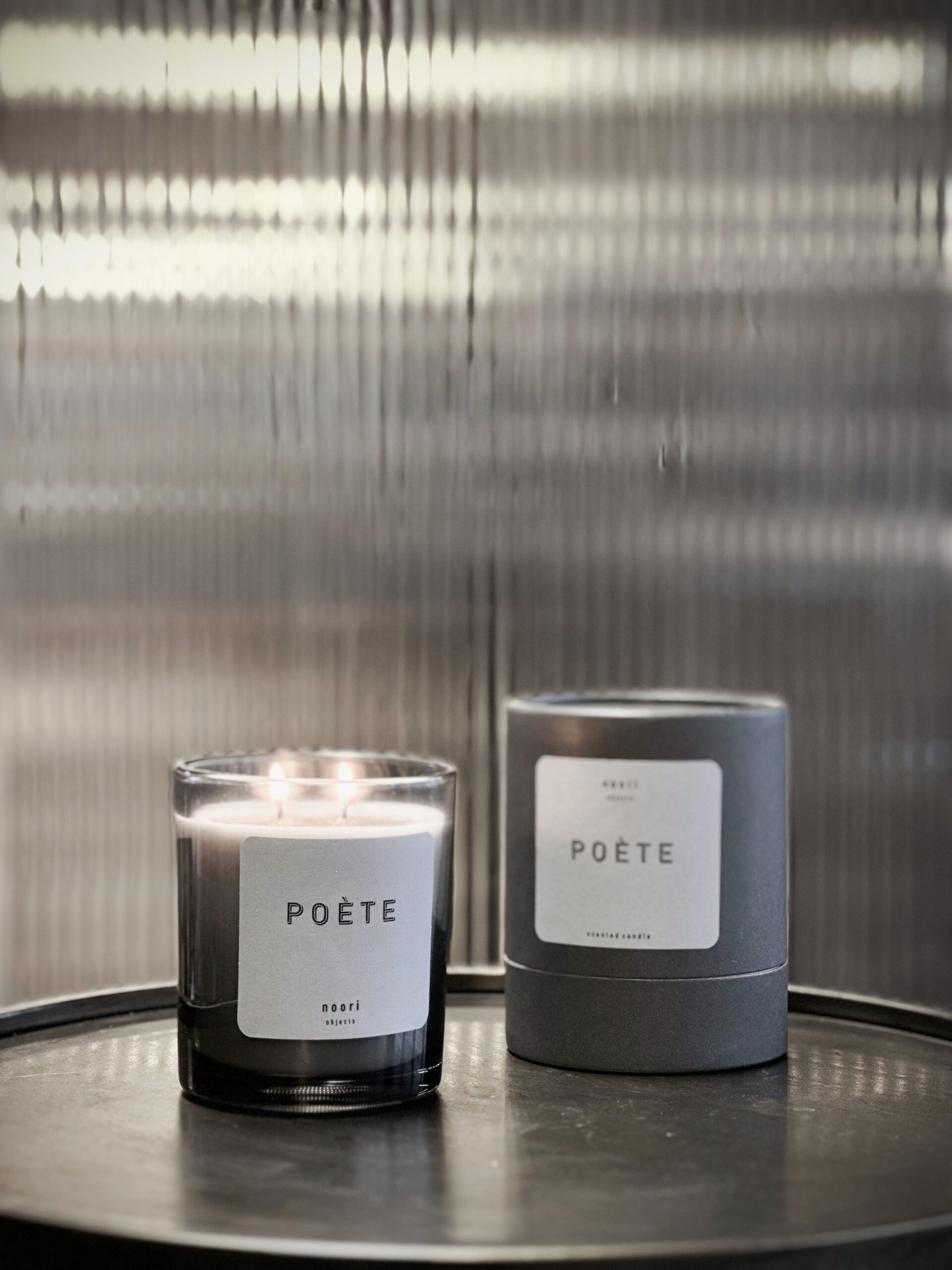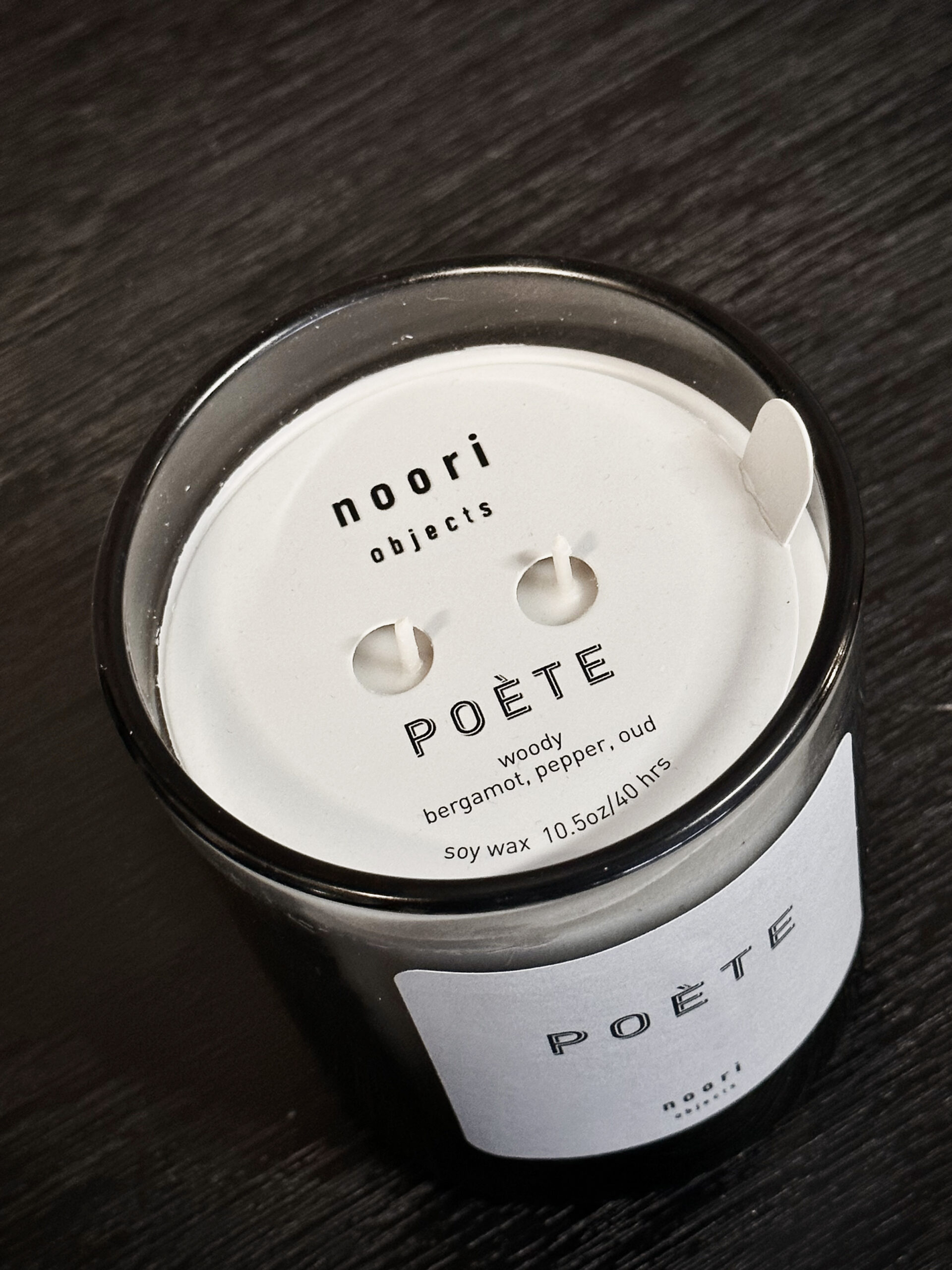 Candela in cera di soia naturale, colata in un raffinato contenitore in vetro fumé. La fragranza POÈTE è profonda e misteriosa: un blend di bergamotto, pepe e oud che sprigiona un carattere deciso e contemplativo.